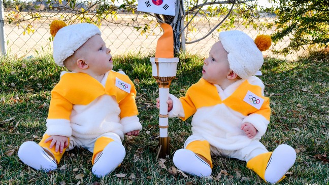 Twins in Rosamond are getting into the Olympic spirit after their mom dressed them up as Olympic ...