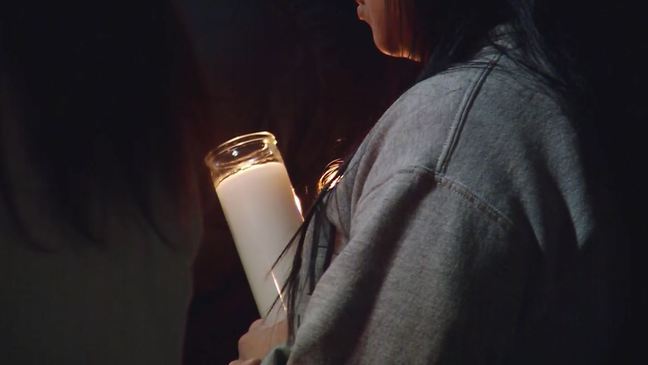 Community members gathered in front of the Fox Theater on Monday to hold a candlelight vigil ...