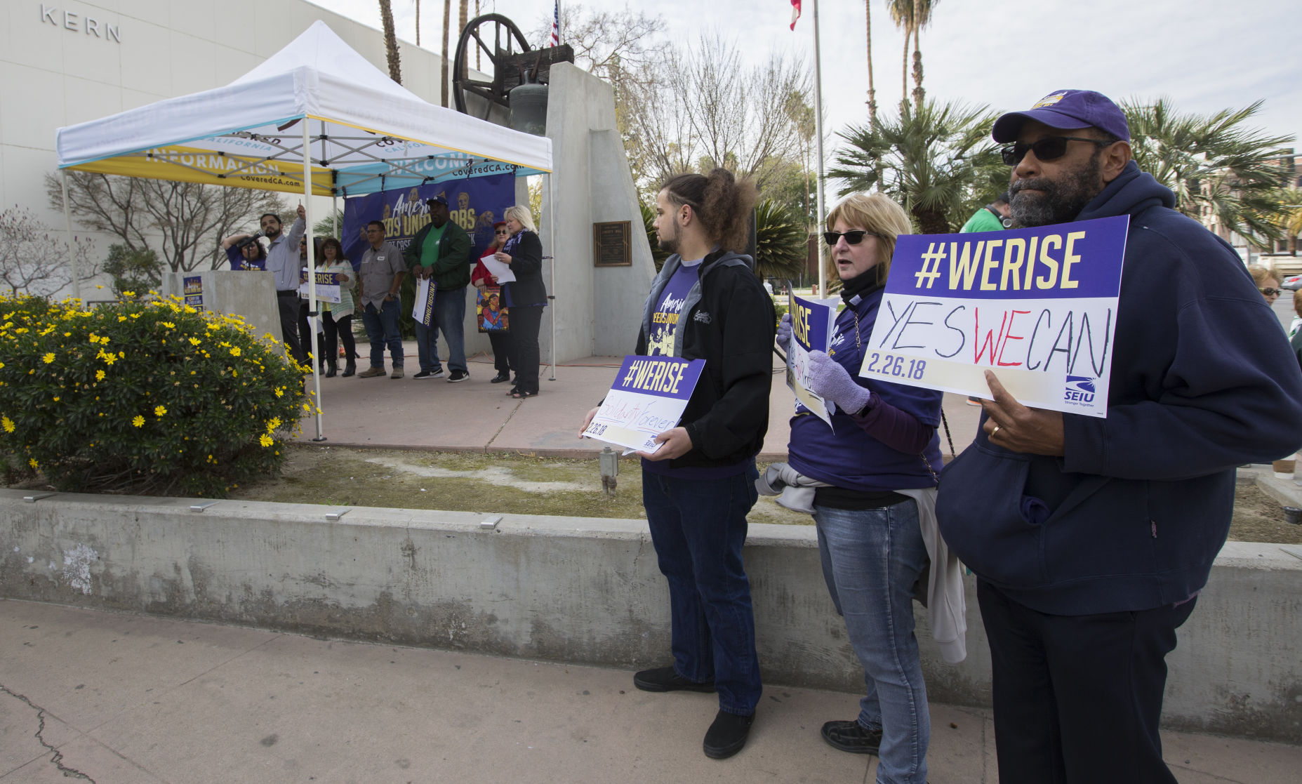 SEIU members, child care workers and others held a noontime rally and news conference on Monday at ...