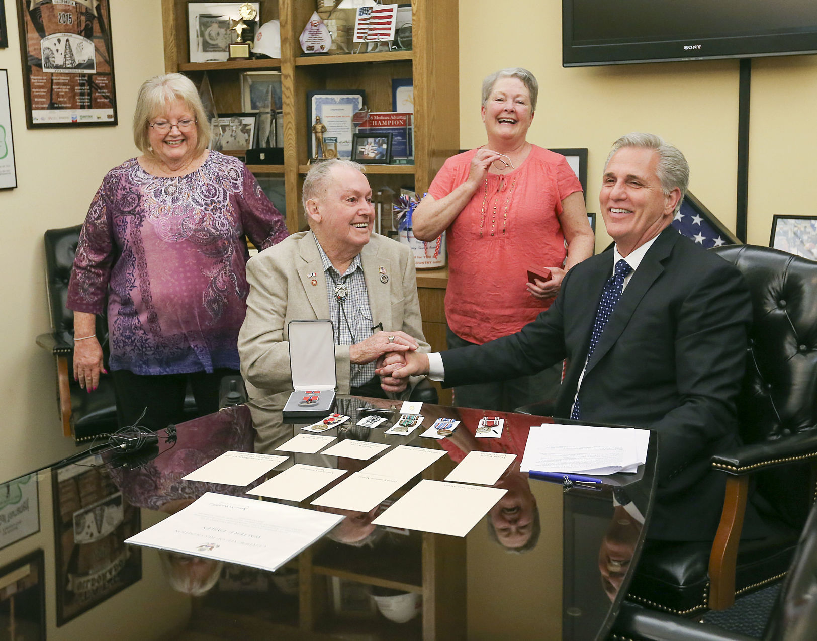 Eight medals including the Bronze Star were presented to Walter Easley by Congressman Kevin ...