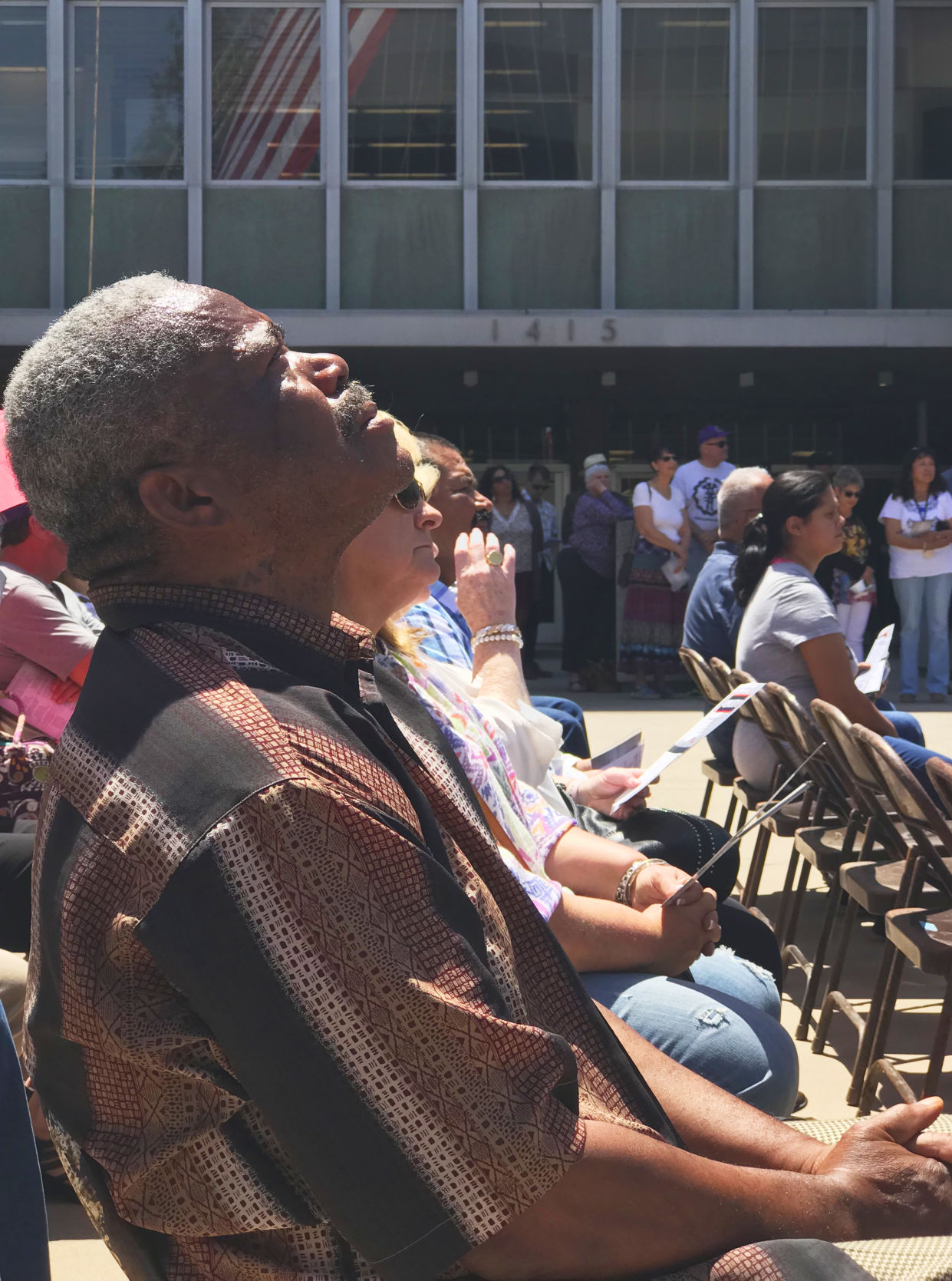Some prayed with eyes closed, their open hands reaching toward the sky. Others formed small circles ...