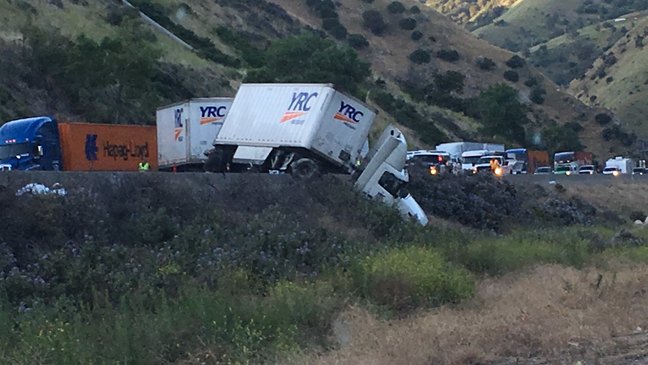 Crews are working to clear road after a semi jackknifed on I-5 North near Lebac and the ...