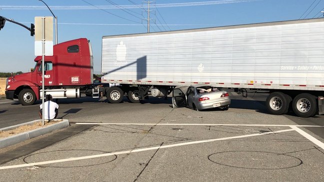 Shafter police officers are investigating a crash that left a car pinned underneath a semitruck ...