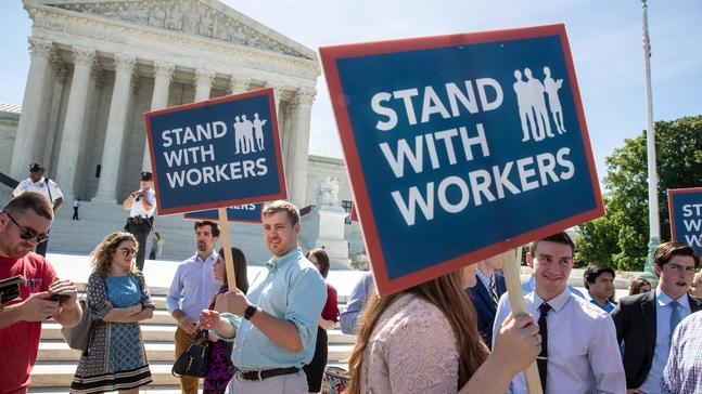 The Supreme Court ruled Wednesday that government workers can't be forced to contribute to labor ...