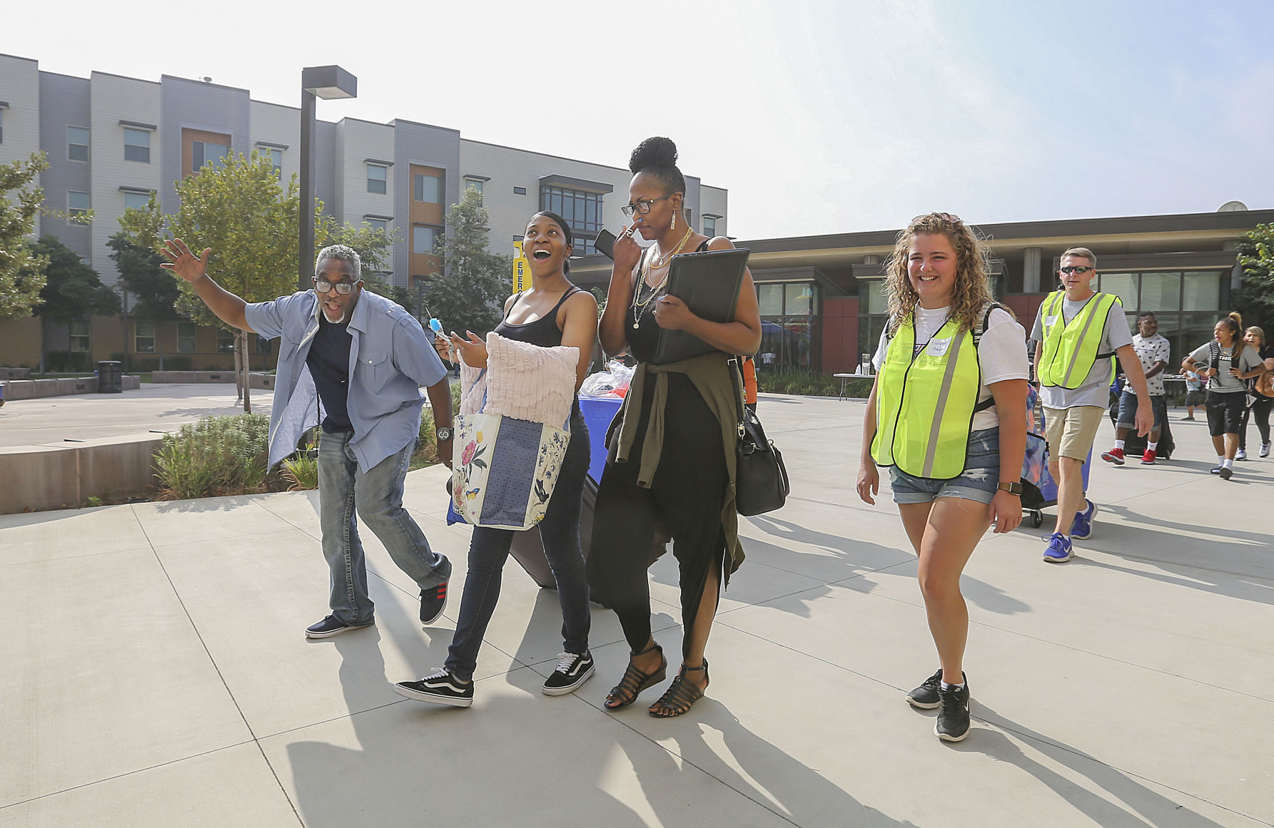 Students started moving into the student dorms early Saturday with the help of family members and ...