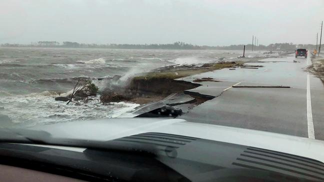 WILMINGTON, N. C. (AP) — Hurricane Florence lumbered ashore in North Carolina with howling 90 mph ...