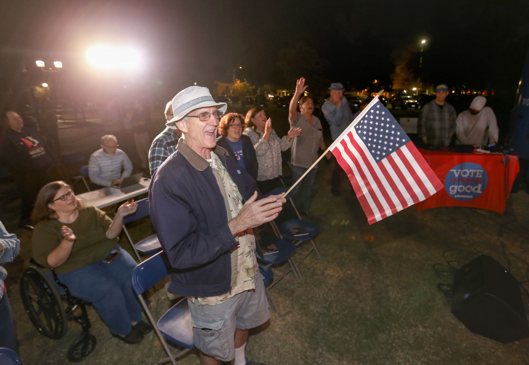 A small group of local evangelicals attend a Vote Common Good rally at Central Park at Mill Creek ...