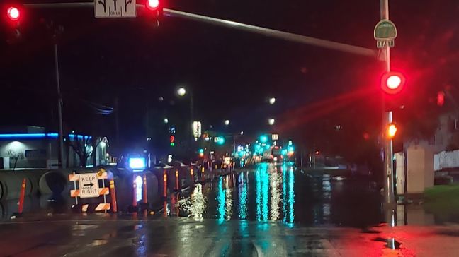 California Highway Patrol officers held off drivers Thursday morning as rain caused flooding on the ...