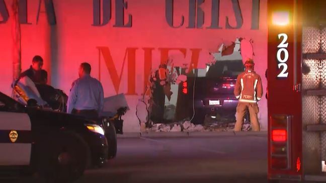 The driver of a truck was injured in a crash Friday night after driving into a church. Officers ...