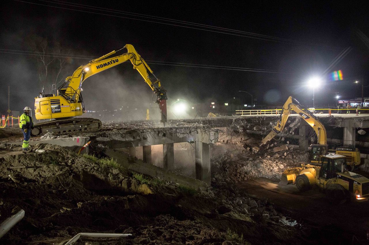 Half of Belle Terrace Bridge came down Sunday night — and demolition of the other half is ...