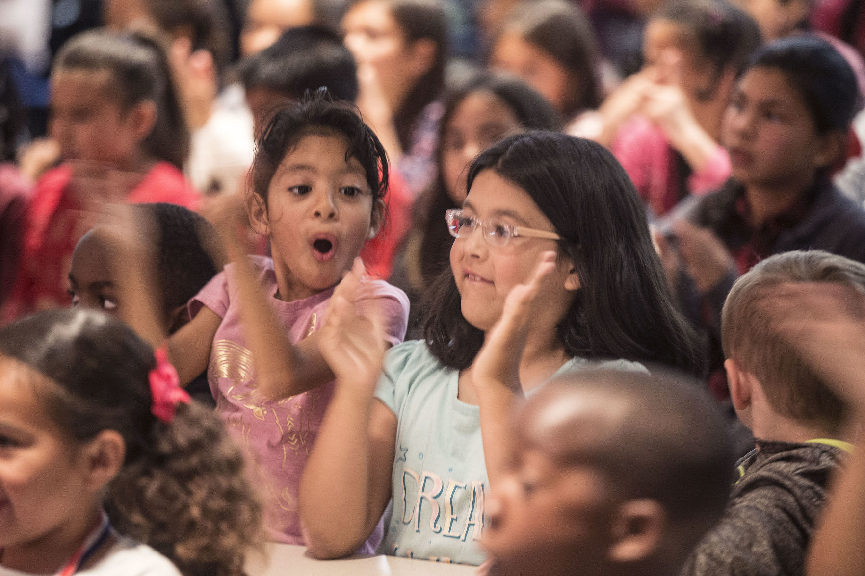 Students at Stella Hills Elementary School put on their shiny red noses Thursday and celebrated ...