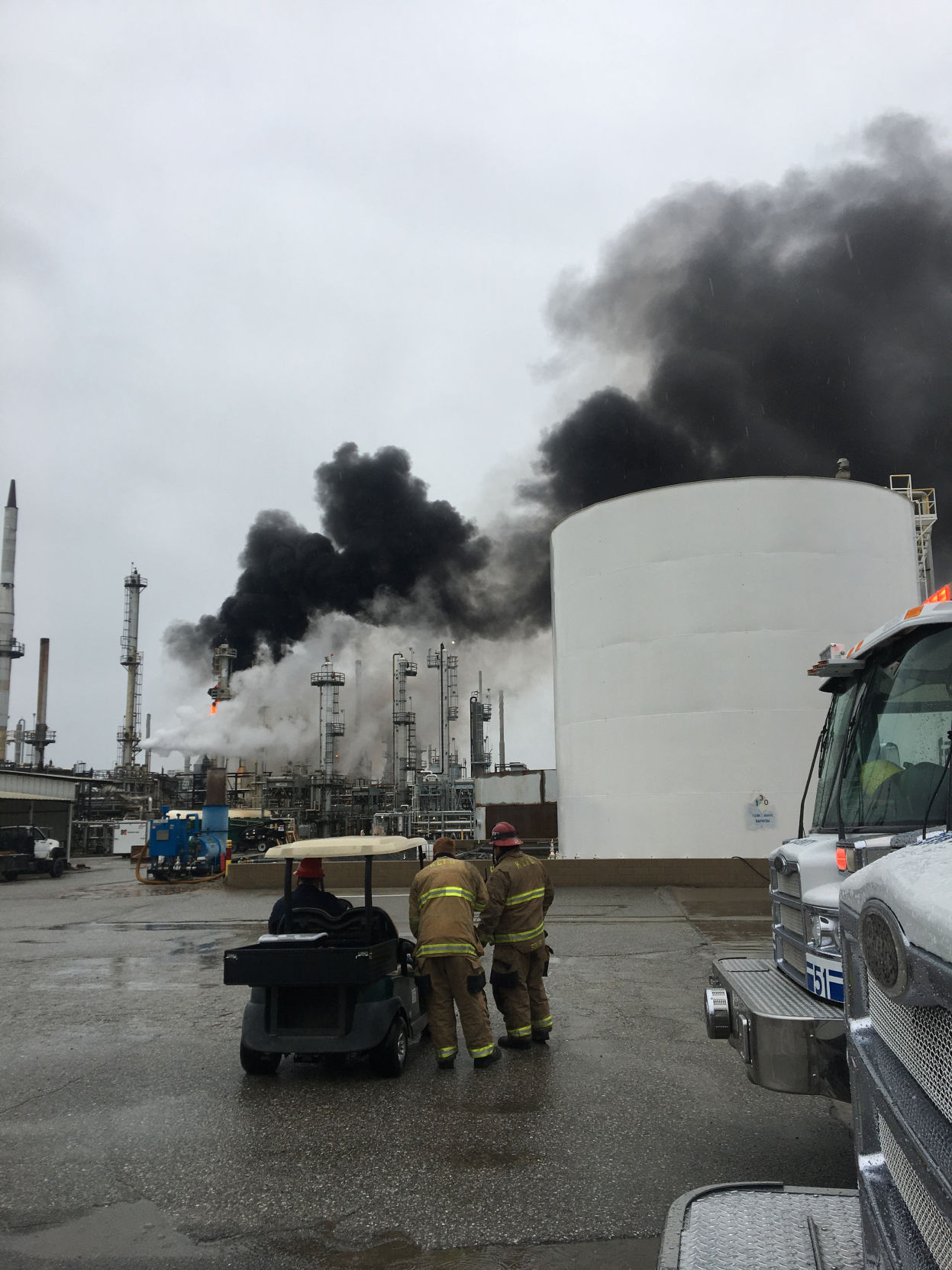 A refinery fire Wednesday morning near Lamont sent a large amount of black smoke into the air but ...