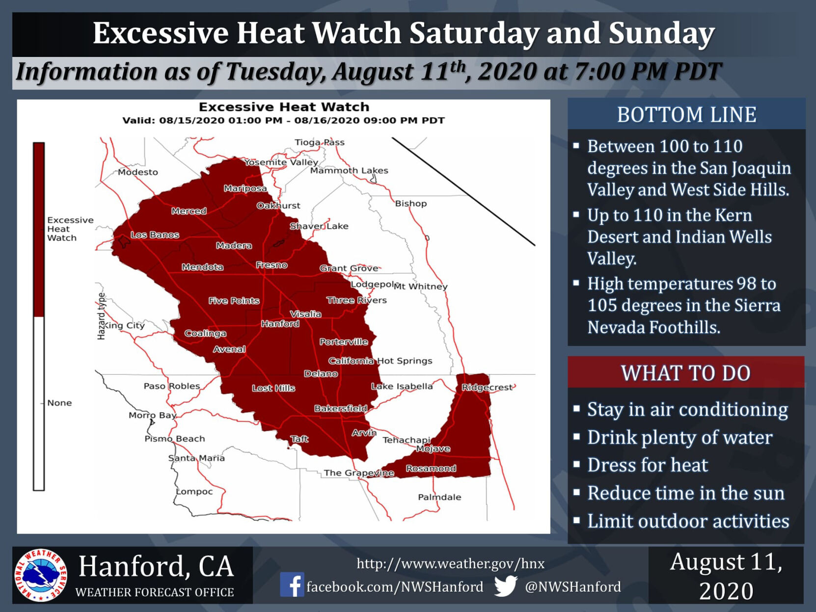The forecast for much of the Central Valley includes an excessive heat watch over the weekend and ...