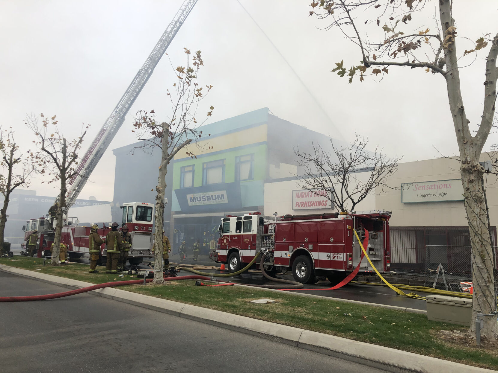Multiple fires broke out on the same block in downtown Bakersfield on Saturday, one in the early ...
