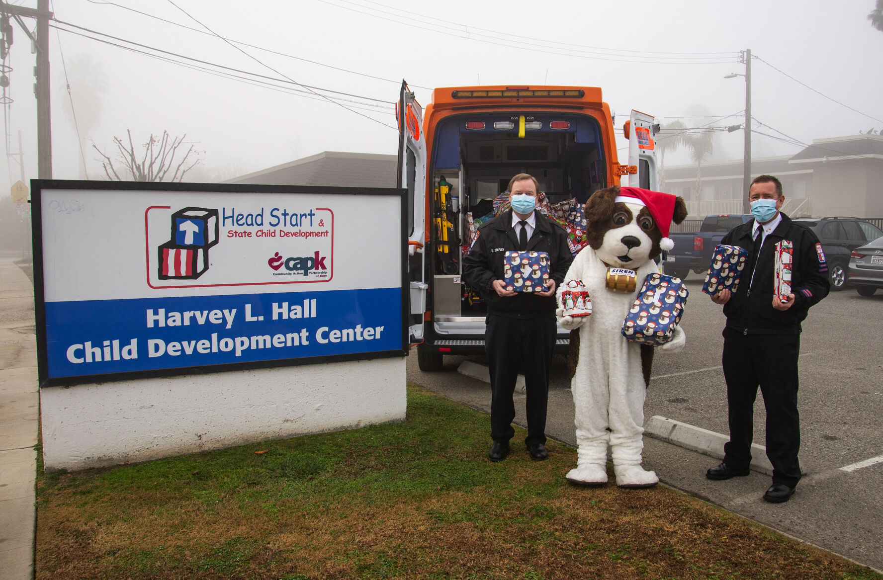 Hall Ambulance's Siren the Rescue Dog delivered more than 75 wrapped Christmas presents to Head ...