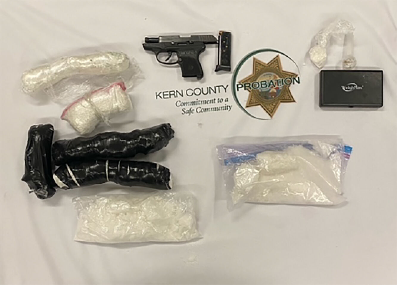 The Kern County Probation Department arrested two people after finding weapons and methamphetamine ...